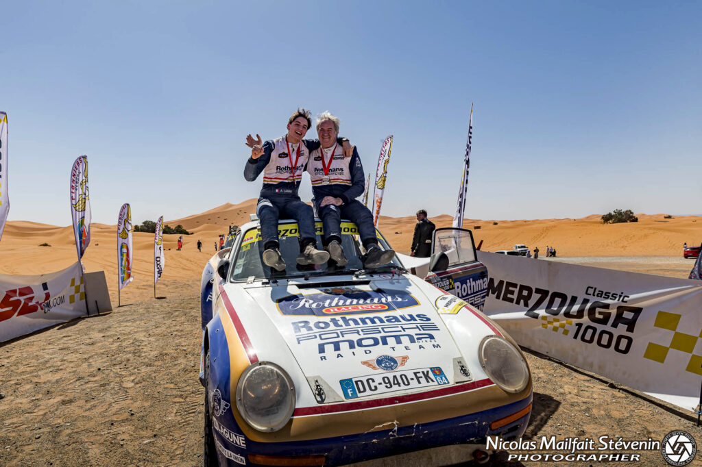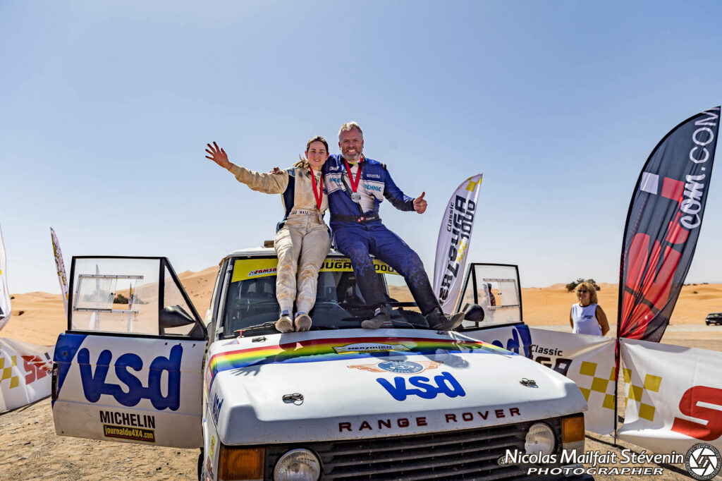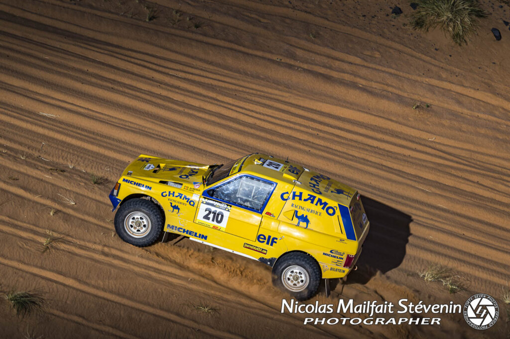 C’était un très beau rallye, très bien organisé au niveau road book avec des étapes ni trop longues ni trop courtes, c’est un bon compromis, il y a toute sorte de terrains : vallons, rochers, rapide, sable, tout ce qu’on peut trouver au Maroc. Le Maroc c’est vraiment un jardin pour s’amuser. Pas trop long dans la durée, 5 jours, pour moi c’est bien. On arrivait de bonne heure avec des étapes pour les plus grandes de 350 km, il y a des étapes on a fini à 11 h le matin, c’est pas mal. Nous on a merdé dans la première étape car on prenait le volant une fois sur deux, mon pilote a été surpris par le sable, on a eu trois plantages et pour s’en sortir en deux roues motrices c’est pas évident. On a eu la chance que la Porsche 959 nous ait sortis. C’est l’esprit convivial et faire play de ce rallye là. Quand tu fais le Dakar avec 600 concurrents, tu ne connais personne, on ne s’arrête pas forcement, ici c’est autre chose, on s’arrête, on prend des nouvelles. Dans la Passe Taga, on est tombé en panne de démarreur, tout le monde nous a demandé si ça allait, c’est rare en rallye de voir des gens comme ça, je trouve ça nickel. Le staff était sympa, l’équipe médicale aussi, très pro. Au niveau road book, rien à dire, si ce n’est les quelques modifications du soir, mais c’est habituel. De belles dunes sur l’arrivée à Merzouga, c’était chaud, moi je me régale en buggy là dessus. J’ai fait le Dakar en 80 et 81 avec ce buggy et René Medge était premier, j’ai fait des photos avec le range de Matthias, j’ai fait un petit parallèle des années après. C’était sympa. On est 8ème au général, 3ème du groupe Pionniers, premier en deux roues motrices.